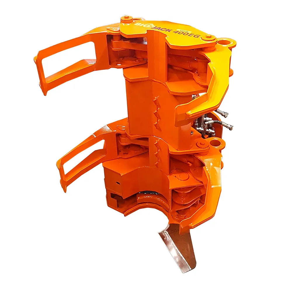 Biojack 400 Combi er en fleksibel fellegrip som kombinerer kniv og motorsag i ett redskap. Den håndterer både små energitrær og større stammer effektivt, og egner seg godt til skogsarbeid, vedlikehold langs veier og arbeid i urbane områder.