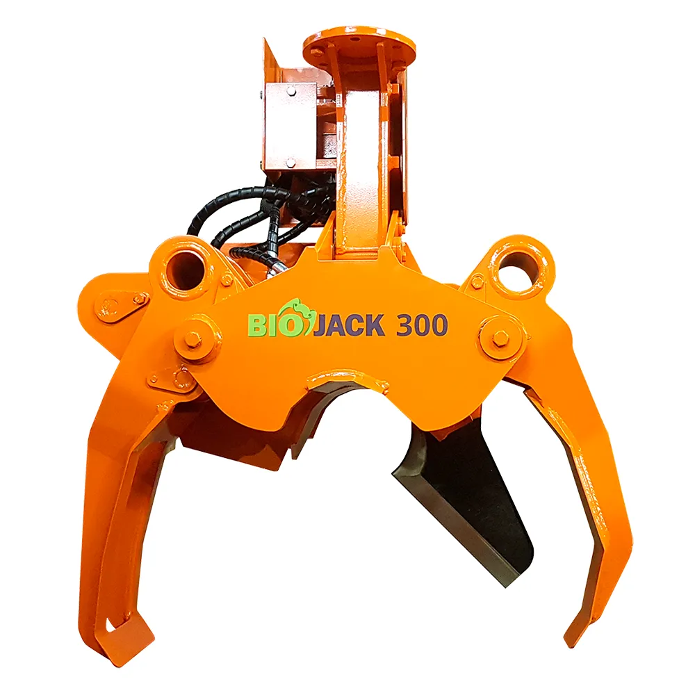 Biojack 300 er en kraftig energived-grip utviklet for tynning, trefelling, rydding av vindfall og energivedhogst. Den kan både felle og laste uten ekstra tilpasninger, er enkel å montere og gir lave stubber og rene kutt.