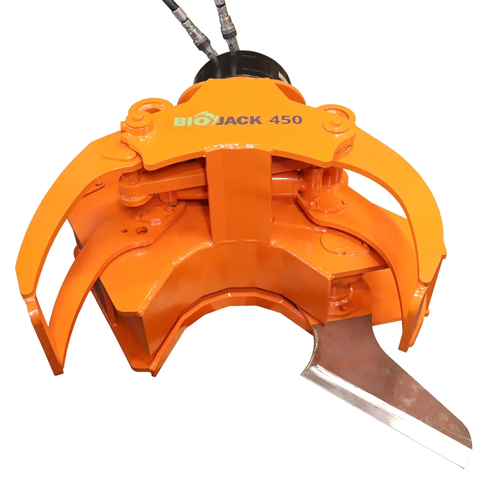 Biojack 450 energived-grip er utstyrt med kraftige tømmerklo-griper.