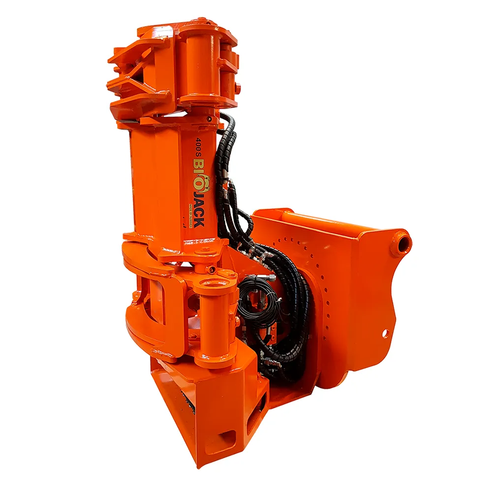 Biojack 400S er en kompakt fellegrip med integrert motorsag, utviklet for tynning, energivedhogst og håndtering av tømmer. Den egner seg også godt til sikker trefelling og beskjæring i områder nær bygninger og infrastruktur