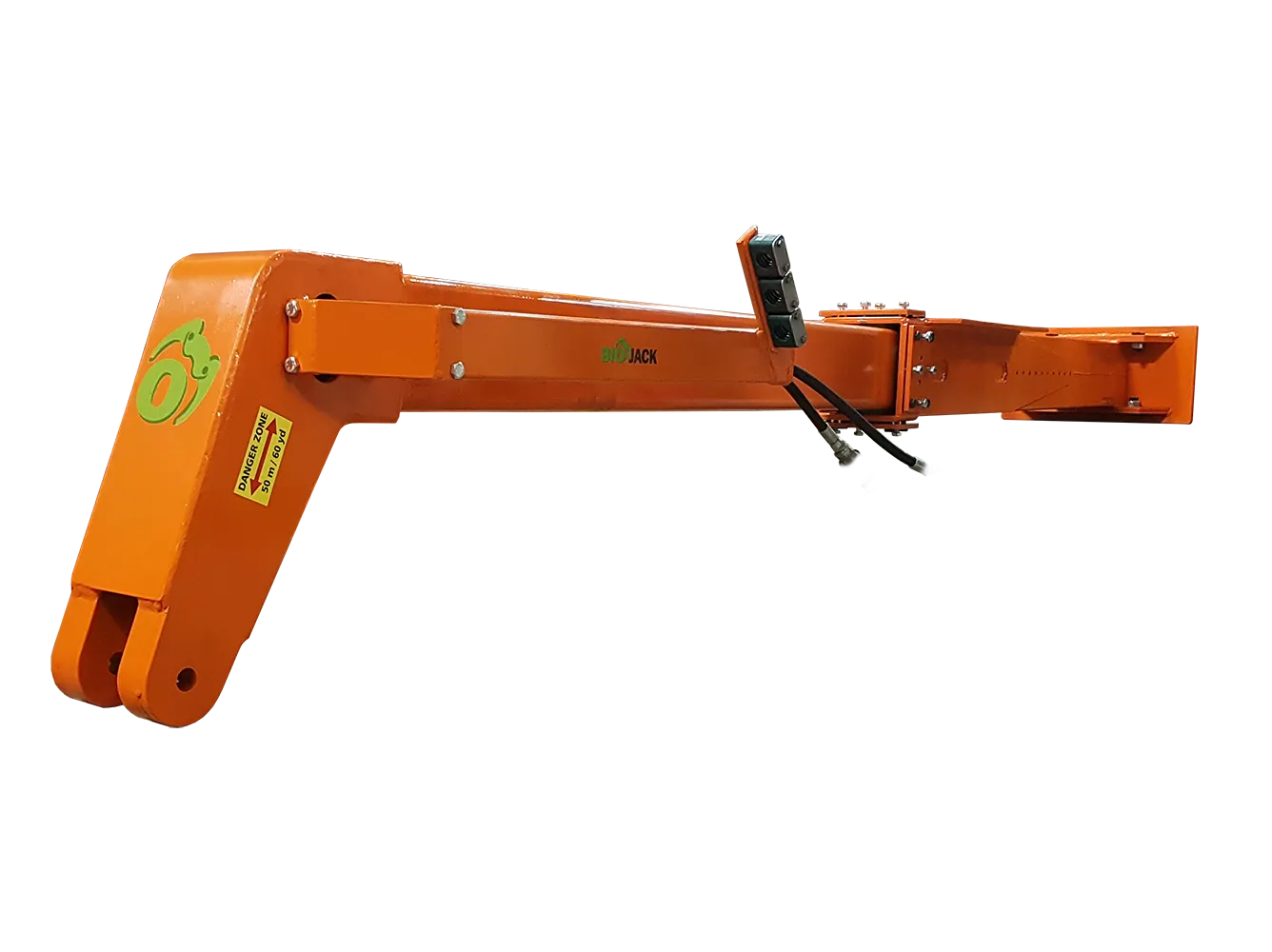 Denne forlengelsesbommen kan utstyres med alle nødvendige hydraulikkslanger for rotator og felleaggregat. Den passer til Biojack tresakser med tilt-enheter (kranmodeller), samt til de mindre hogstaggregatene Biojack 300 Harvester og Biojack 330 Harvester.